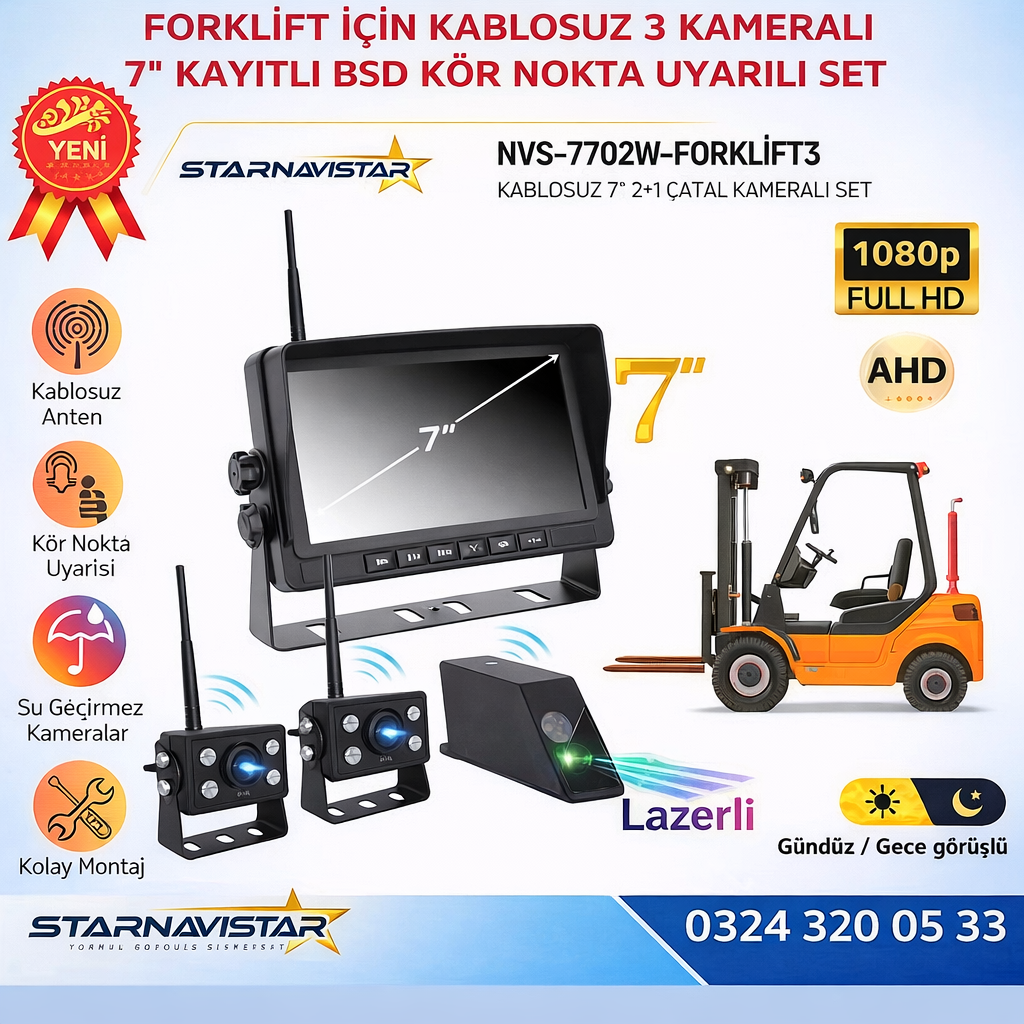 2 Kablosuz Kameralı Lazerli Forklift Güvenlik S…
