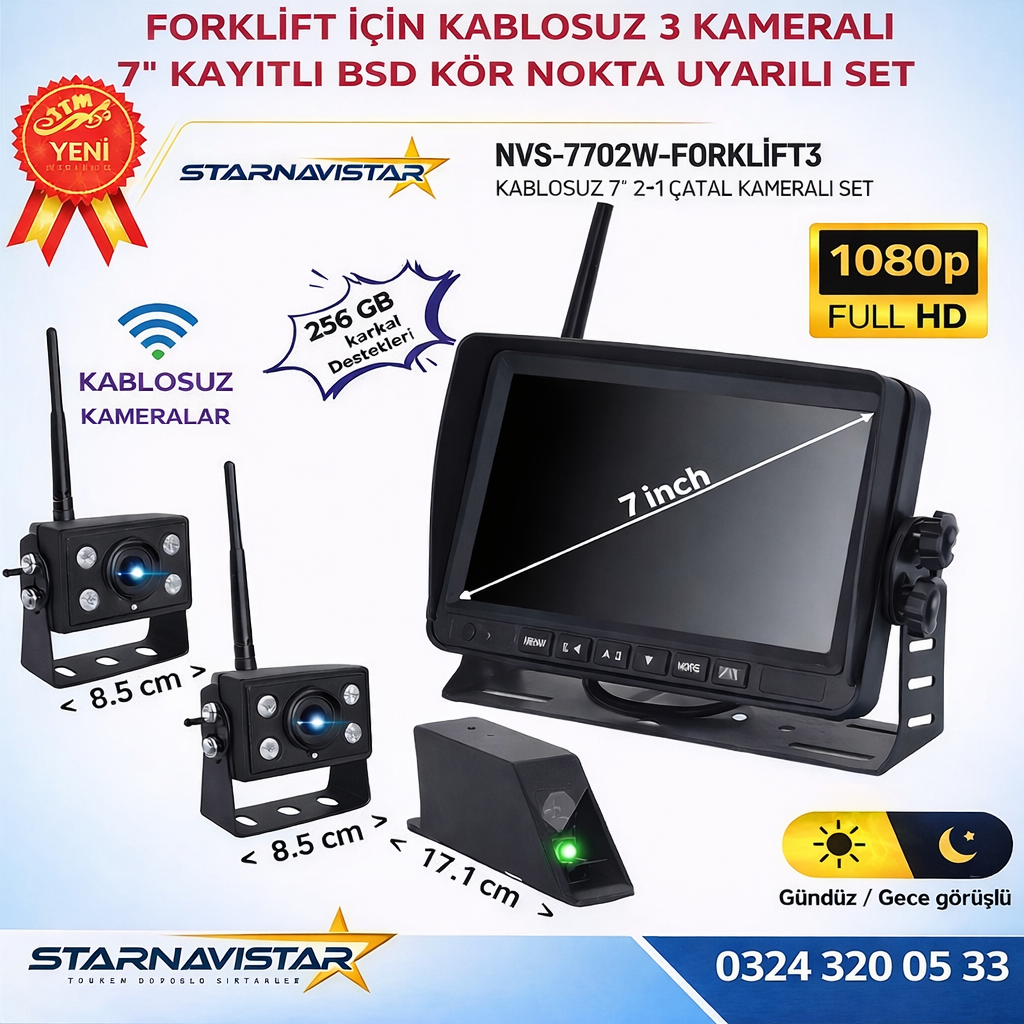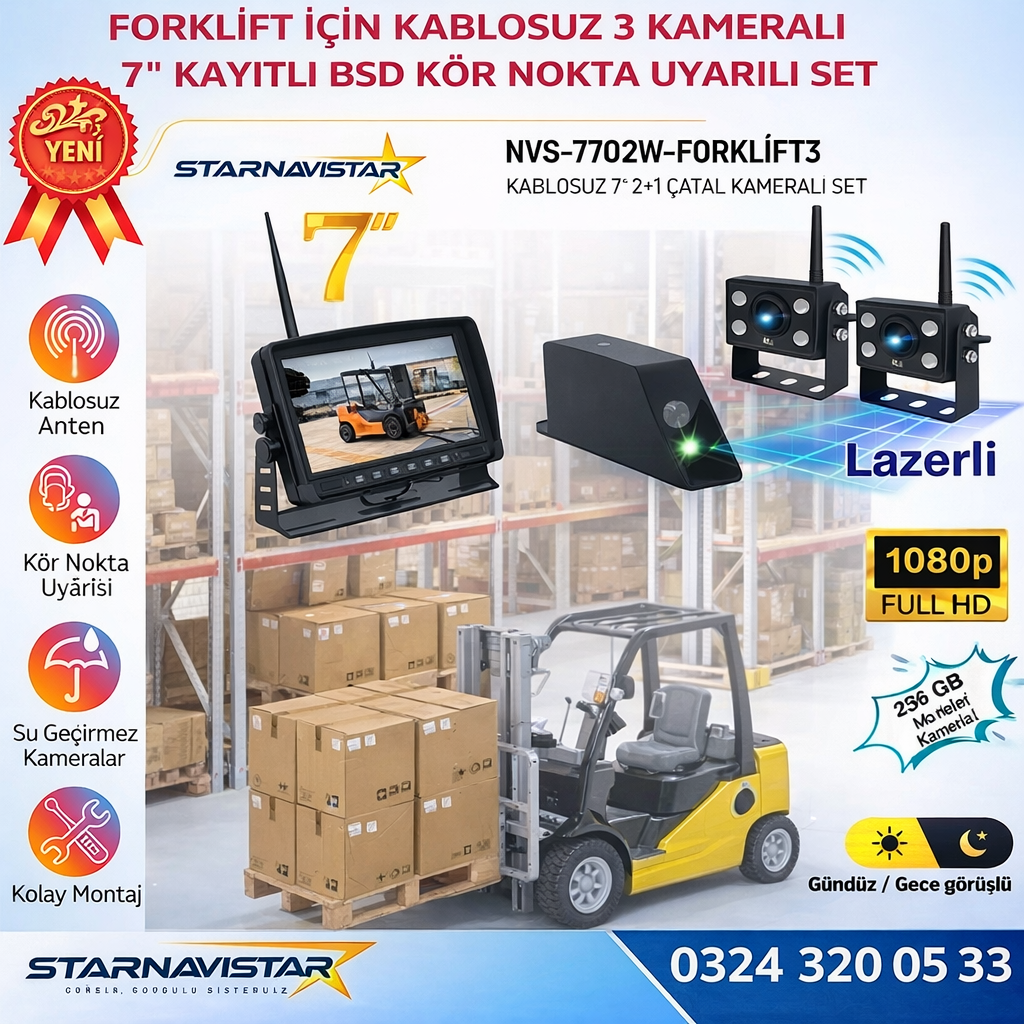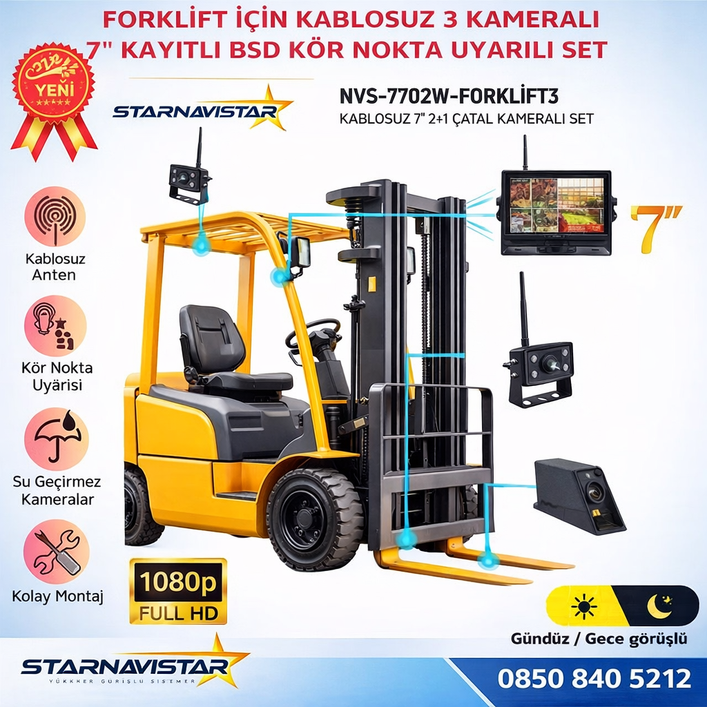 2 Kablosuz Kameralı Forklift Güvenlik Sistemi 7…