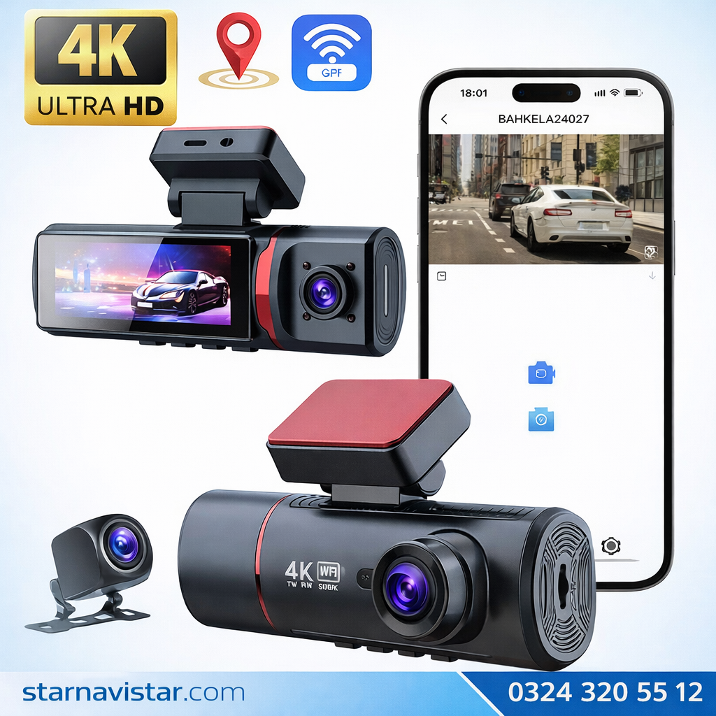2 Kameralı 4K+1080P Ekransız WIFI GPS 24 Saat P…