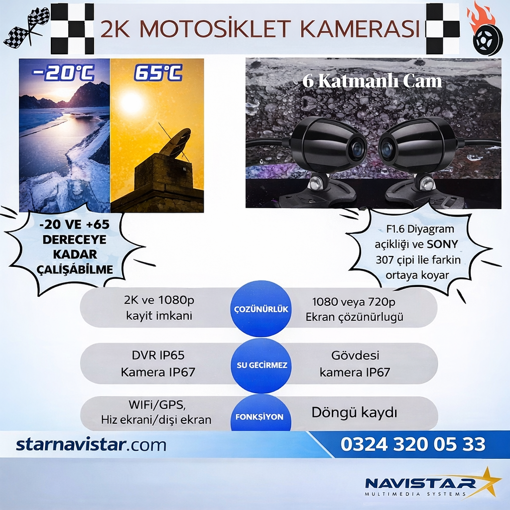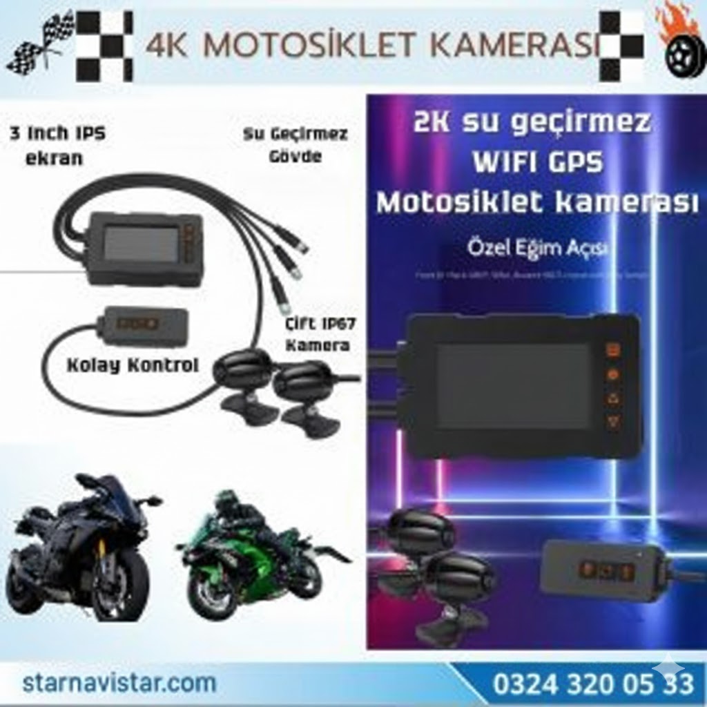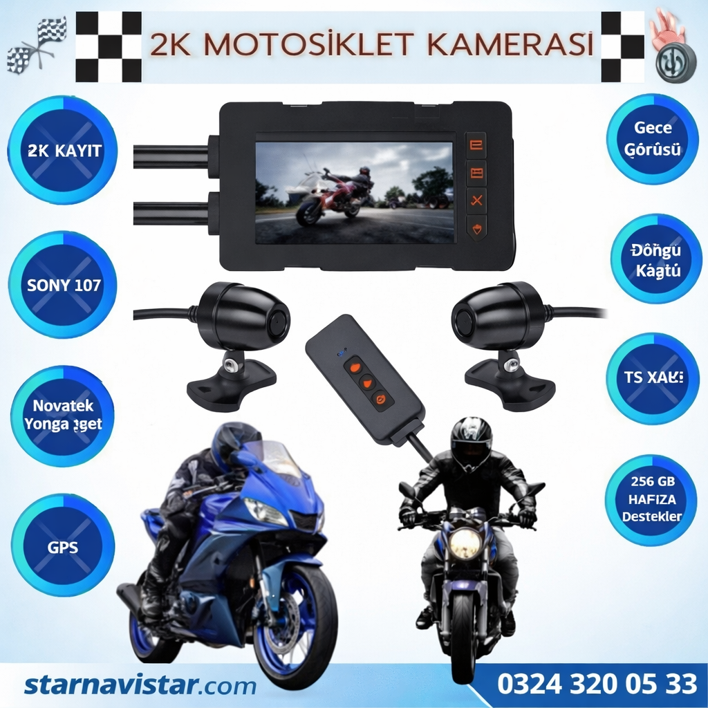 Motosiklet için Kayıtlı 2K+1080P Çözünürlüklü 3…