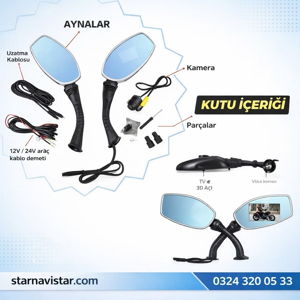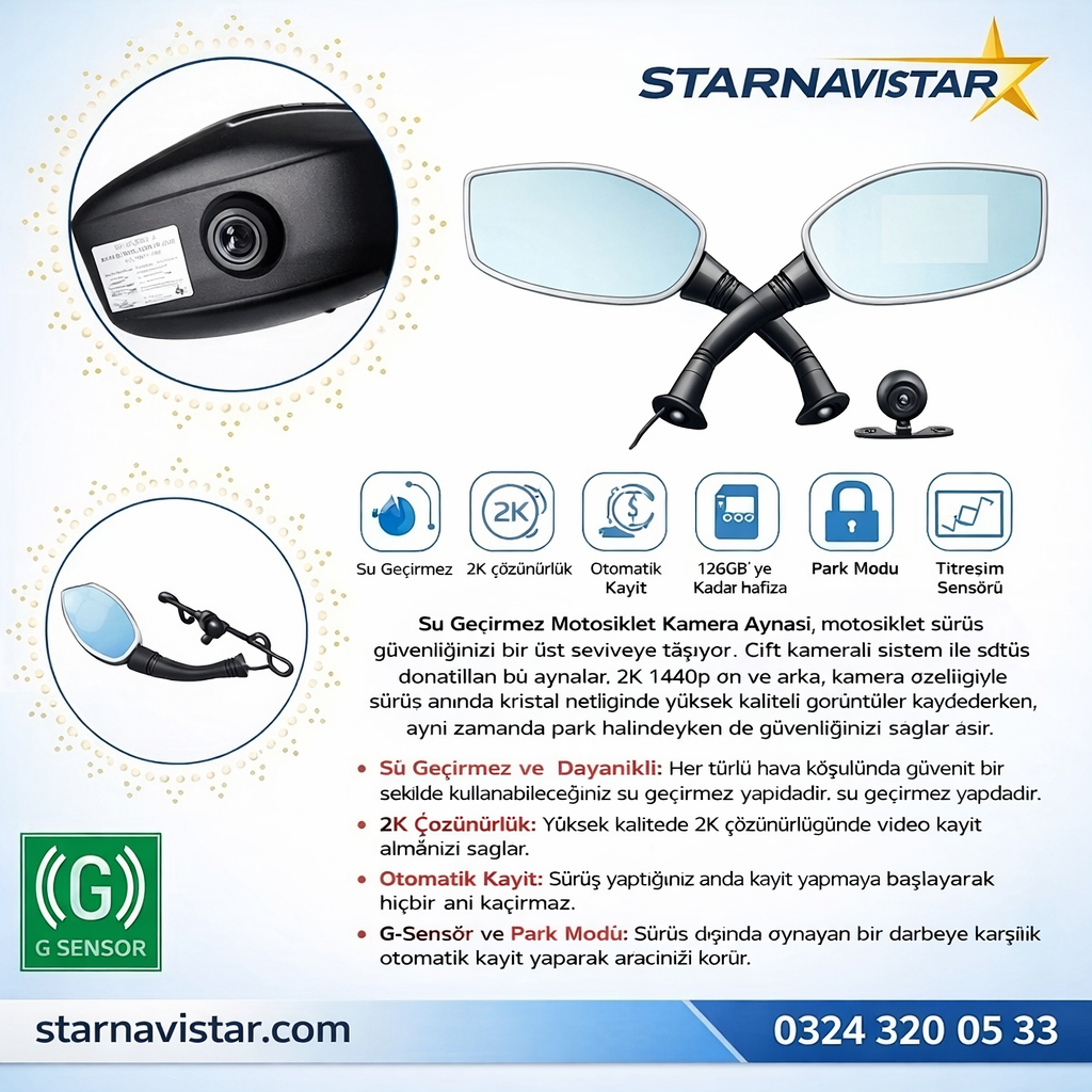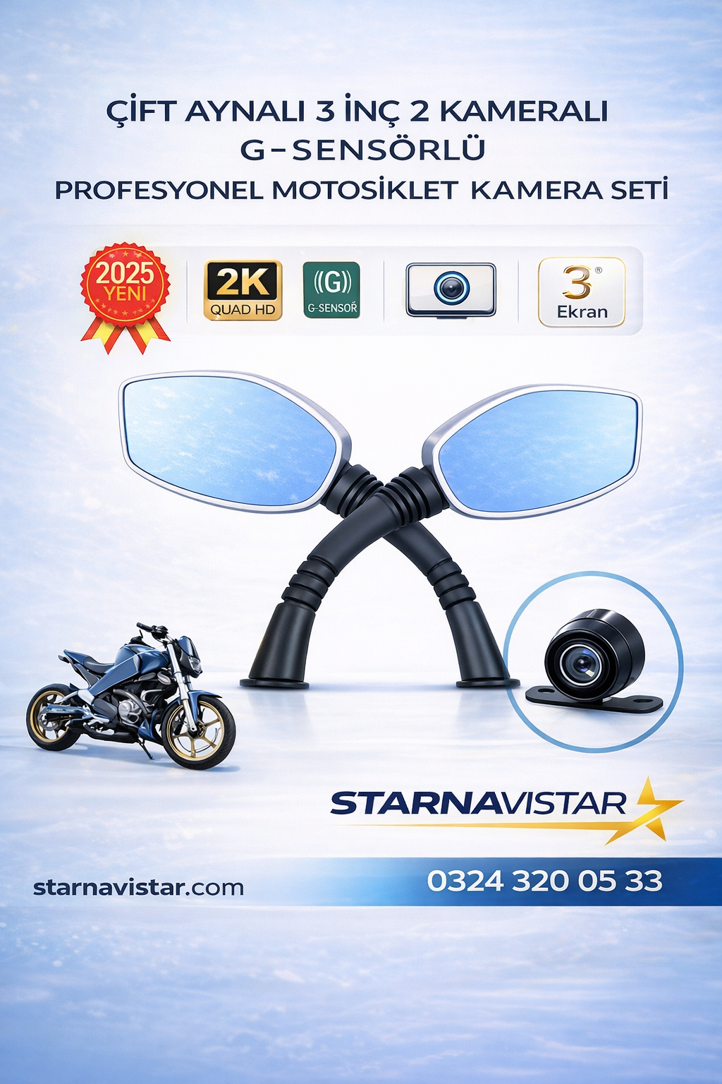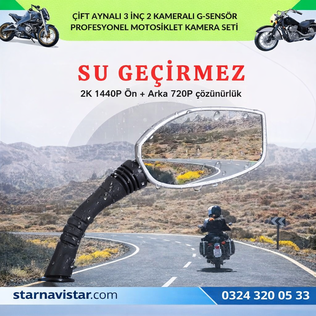 Motosiklet için 3 inç Aynalı Çift Kameralı 2K 1…