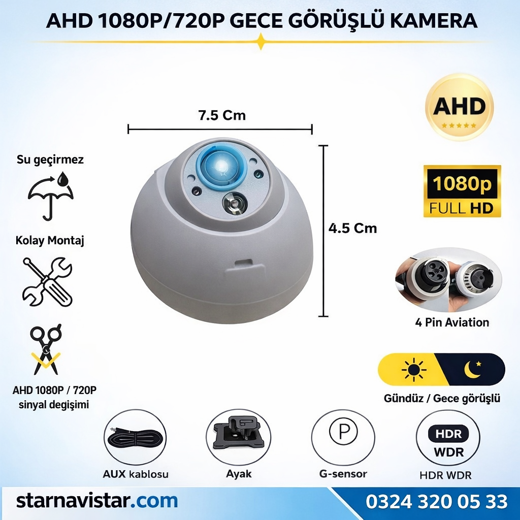 Mini Boyutlu AHD 1080P ve 720P Dönüşümlü Gece G…
