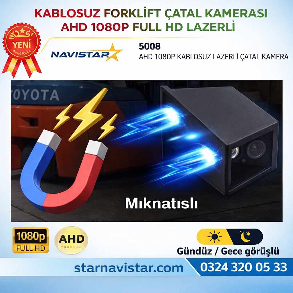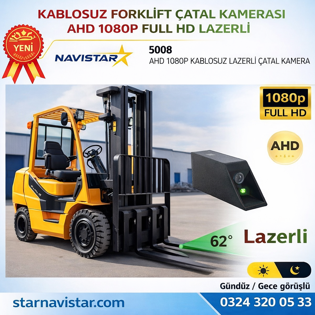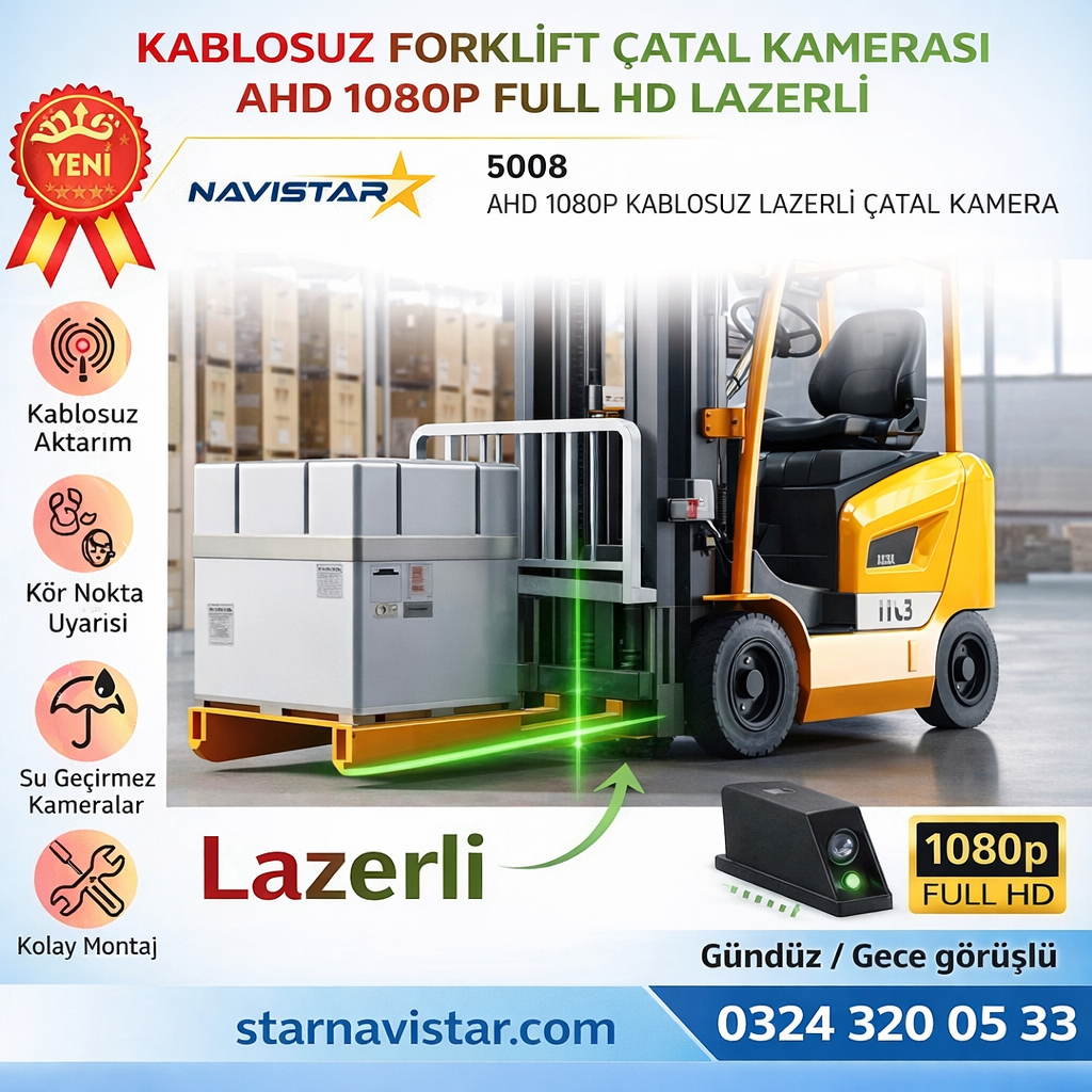 Forklift Çatal Kamerası Kablosuz Lazerli 1080P…
