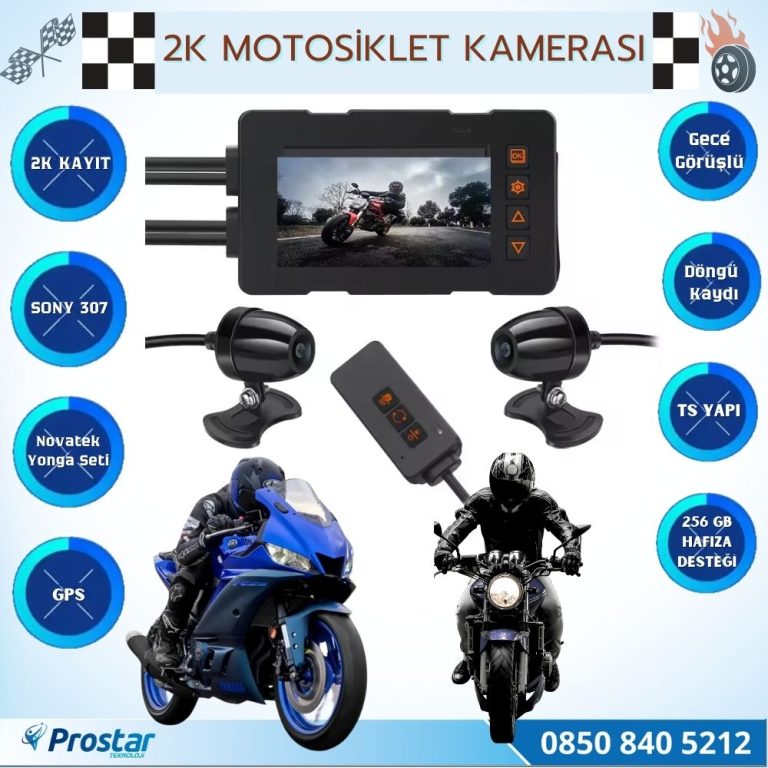 Motosiklet için Kayıtlı 2K+1080P Çözünürlüklü 3 inç 2 kameralı Tak kullan Kamera Seti