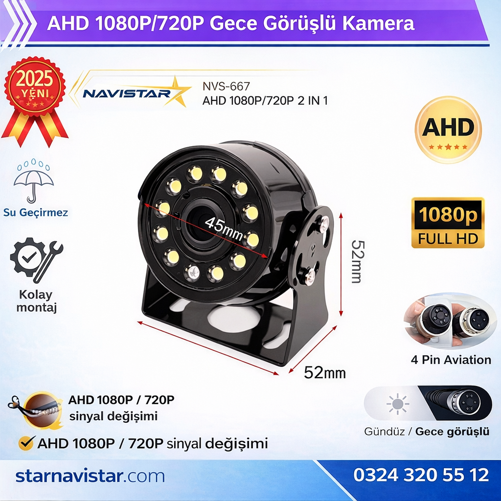 AHD 1080P/720P Orta Boy Gece Görüşlü 4 Pin Soke…
