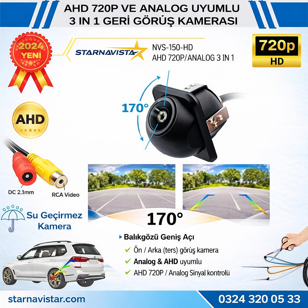 AHD 720P ve Analog Pal Çevrilebilir 170 Derece…
