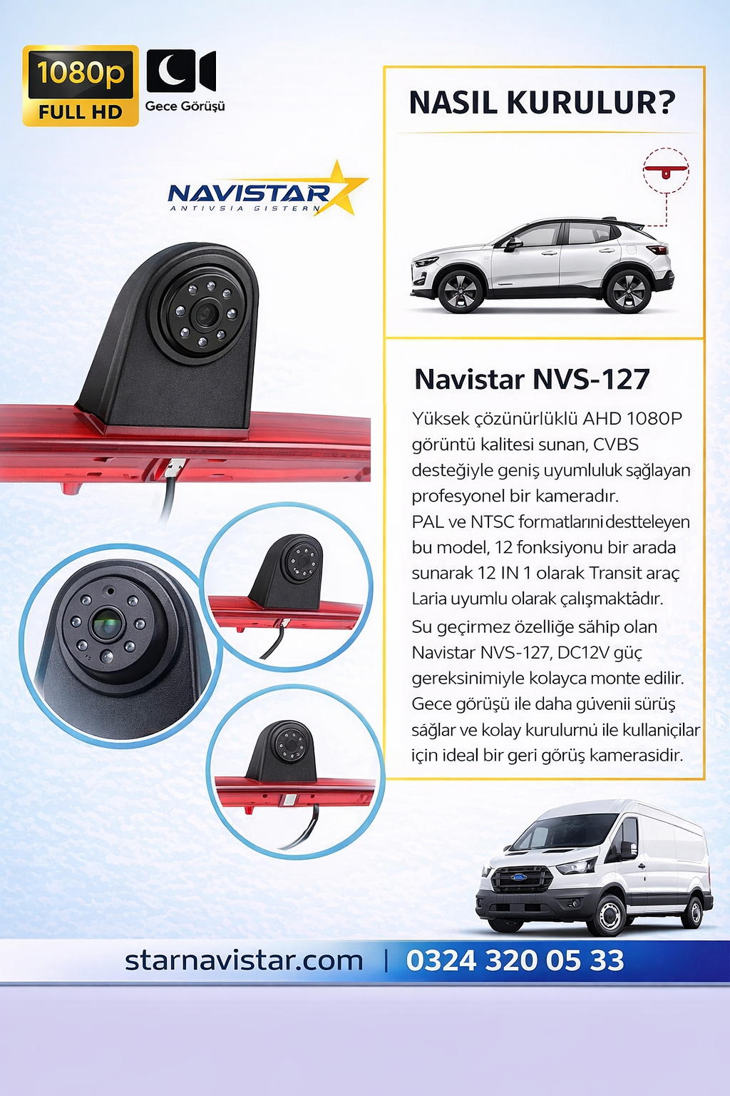 Ford Transit için Profesyonel AHD 1080P 12 in 1…