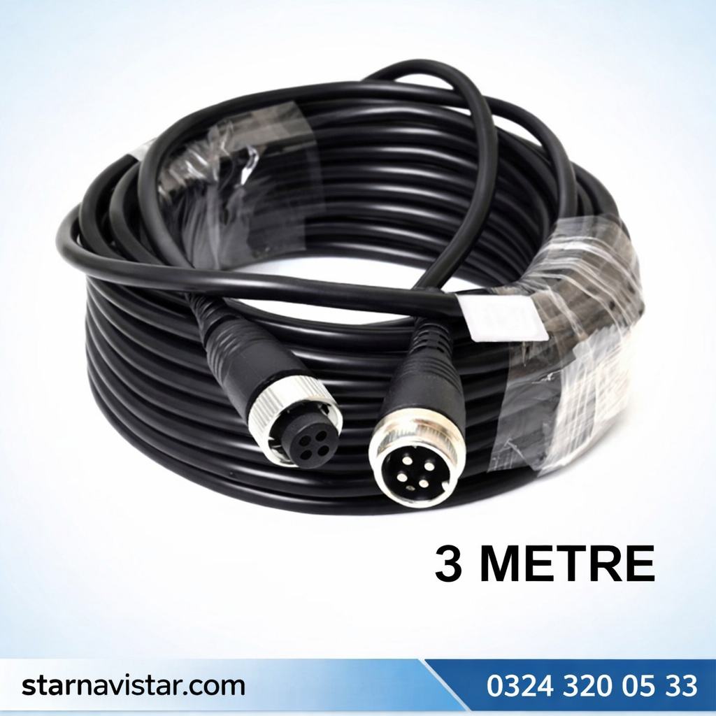 4 Pin Aviation Hazır Araç Kamera Kablosu 3 Metre