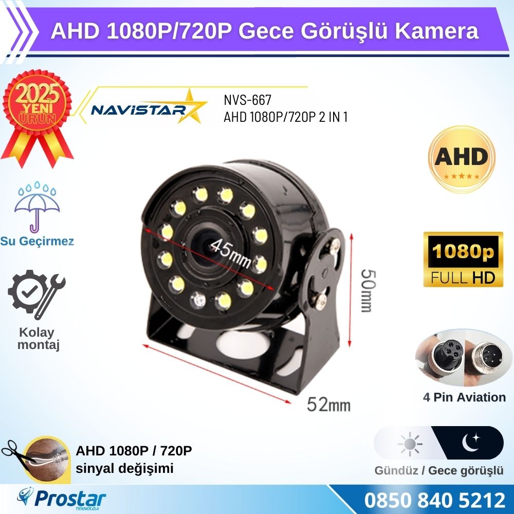Navistar NVS-667, AHD 1080P/720P video formatını destekleyen evrensel uyumlu araç kamerası sistemidir. Mevcut tüm DVR sistemleri ile tam uyumluluk sağlar.