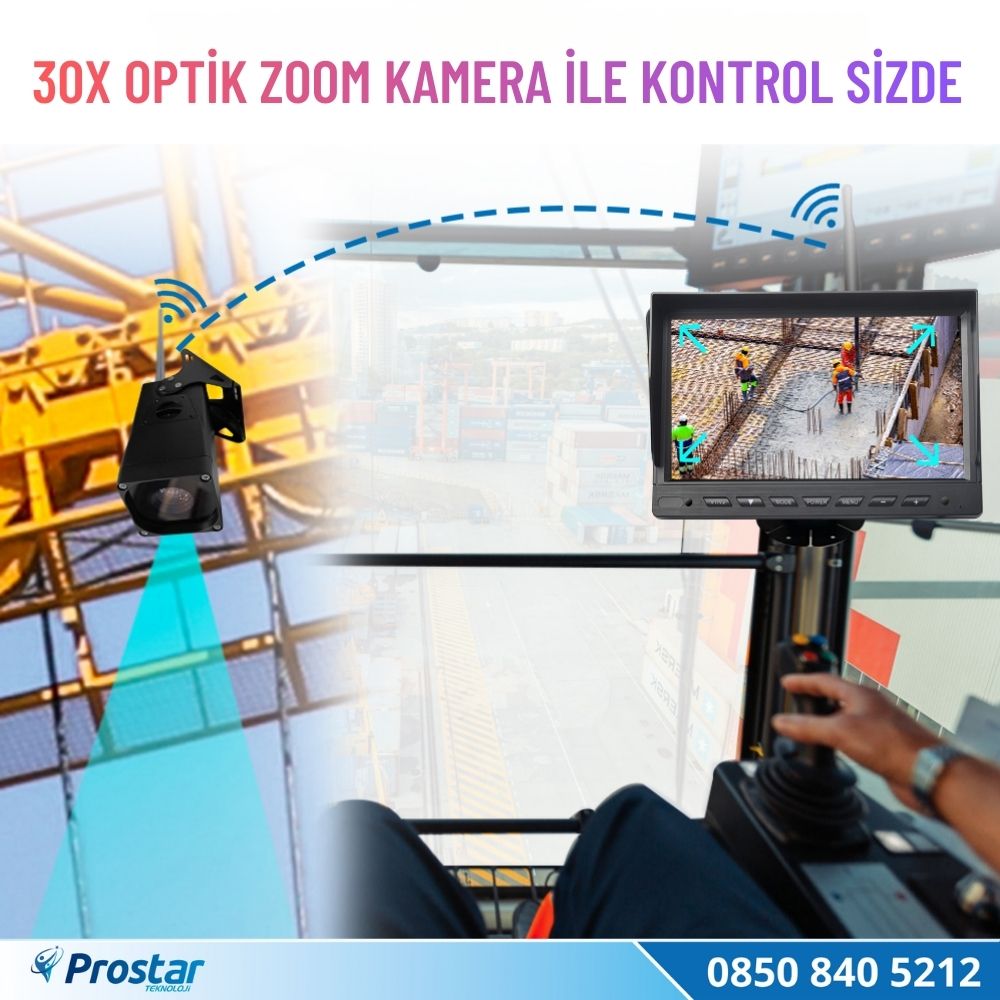 Standart kameraların yetersiz kaldığı uzak mesafelerde 30X optik zoom kapasitesi sayesinde vinç kancasını, yükü ve çevresindeki personeli kristal netliğinde takip edebilirsiniz. Artık operatör kabininden göremediğiniz köşeler ve detaylar şeffaf hale gelir; iş güvenliği ve operasyon hassasiyeti üst seviyeye taşınır.