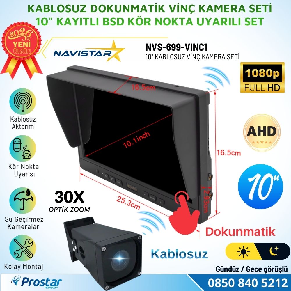 NAVISTAR NVS-699-VINC1 – 10″ Kablosuz Dokunmatik Monitörlü 30X Optik Zoom AHD 1080P Full HD Vinç Kamera Seti