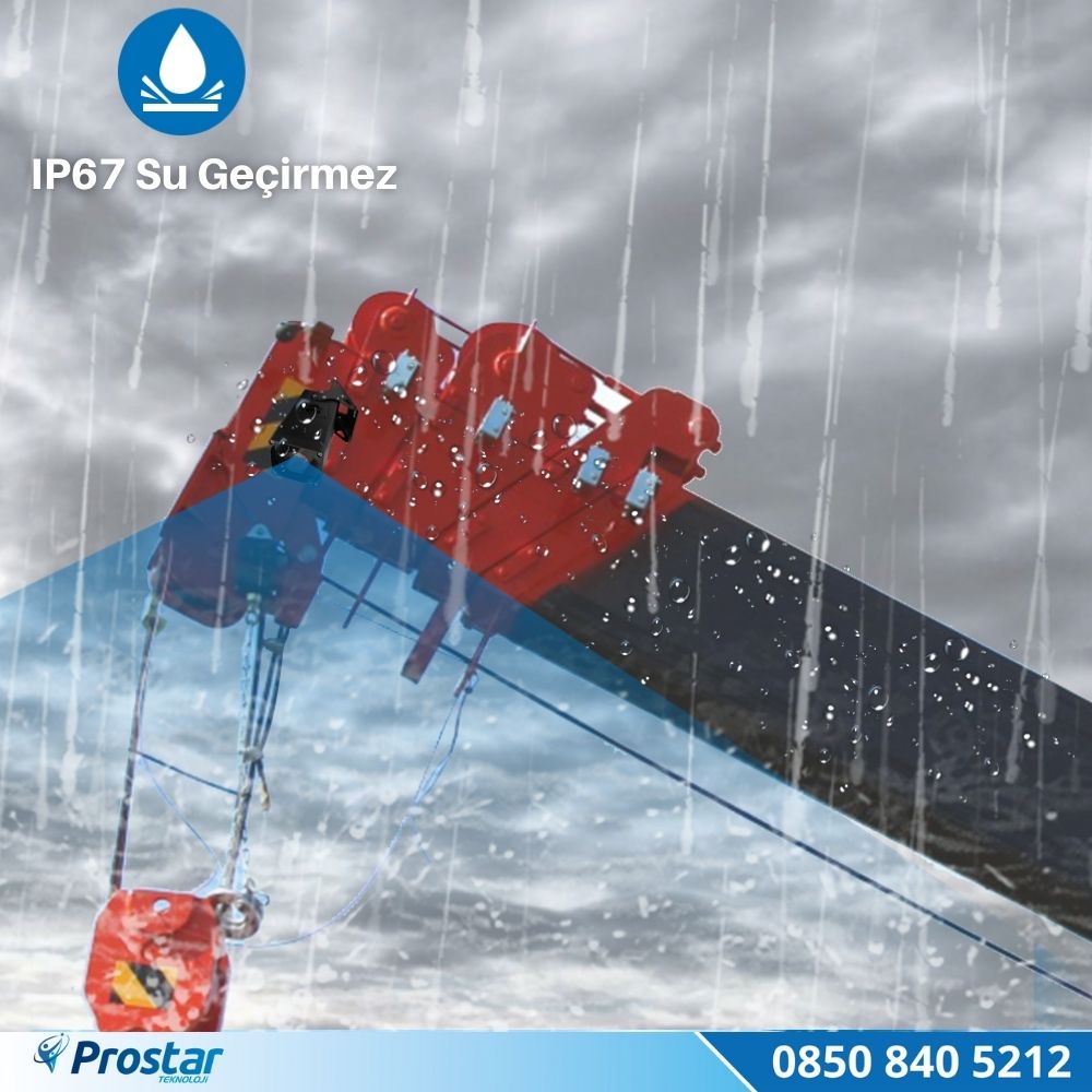 Vinç koluna monte edilen kamera, her hava koşulunda çalışmak üzere tasarlanmıştır. IP67 sertifikası ile yoğun yağmur, toz, çamur ve nem altında sorunsuz çalışma garantisi verir. Sağlam metal kasa yapısı, inşaat sahalarının sert fiziksel koşullarına karşı uzun ömürlü dayanım sağlar.