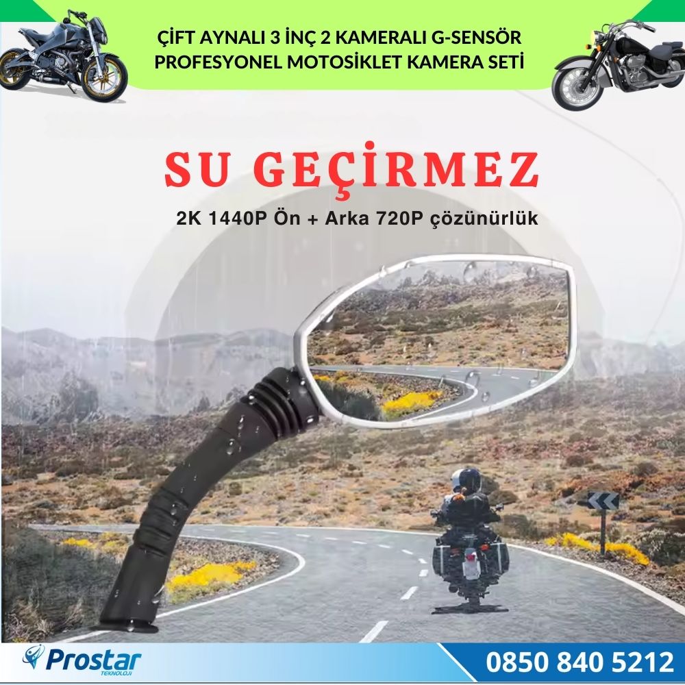 Navistar M796 2 Kameralı WIFI GPS 256 GB Sd kart destekli Aynalı Motosiklet Kamera Sistemi