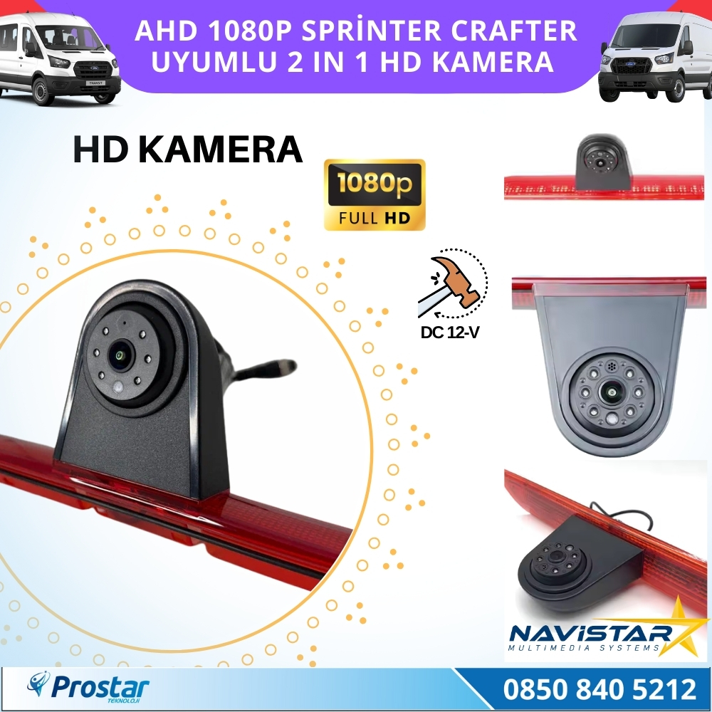 Sprinter ve Crafter araçlarında kullanılabilen AHD 1080P HD kamera ürününün özelliklerini ve avantajlarını detaylarıyla ele alacağım. Sprinter Crafter Uyumlu AHD 1080P HD Kamera, Sprinter ve Crafter gibi ticari amaçlı kullanılan araçlar için özel olarak tasarlanmış bir güvenlik kamerasıdır. Araçların büyük ve geniş hacmi nedeniyle güvenlik açısından oldukça önem taşıyan bu kameralar, sürücülere ve araç sahiplerine büyük bir kolaylık sağlamaktadır. AHD (Analog High Definition) teknolojisi sayesinde, 1080P çözünürlüğe sahip olan bu kamera, yüksek çözünürlüklü görüntü kalitesi sunmaktadır. Bu sayede, araç içi ve dışı görüntüler çok daha net ve ayrıntılı bir şekilde görülebilmektedir. Anlık görüntü aktarımı sayesinde, araçlarınızın etrafında olup biten her şeyi anında gözlemleyebilir, olası tehlikeleri önceden fark edebilirsiniz. Sprinter Crafter Uyumlu AHD 1080P HD Kamera, gece görüş özelliği sayesinde, karanlık ve düşük ışıklı ortamlarda bile net görüntüler sunar. Bu sayede, aracınızın güvenliği gece saatlerinde de sağlanmış olur. Ayrıca, kamera 170 derece geniş açıya sahiptir, bu da aracın çevresini çok daha geniş bir açıyla görebilmenizi sağlar. Dayanıklı ve suya dayanıklı yapıya sahip olan Sprinter Crafter Uyumlu AHD 1080P HD Kamera, ağır hava koşullarına ve dış etkenlere karşı koruma sağlar. Bu sayede, uzun ömürlü kullanım vaat eder. Montajı oldukça kolay olan bu kamera, araçta uygun bir yere monte edilerek hızlıca kullanıma hazır hale getirilir. Ayrıca, kameranın boyutu da oldukça küçük olduğu için aracın özgün tasarımına zarar vermez.